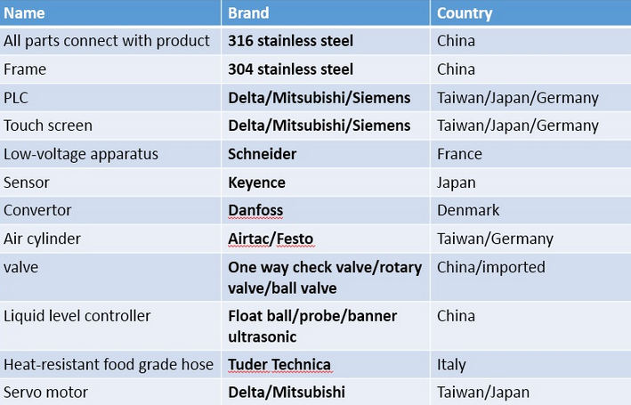 សមាសធាតុទាំងអស់ដែលទាក់ទងនឹងផលិតកម្មត្រូវបានផលិតពីដែកអ៊ីណុក ៣១៦ អិលដែលនាំចូលនិងកែច្នៃដោយម៉ាស៊ីនអេសអិន។